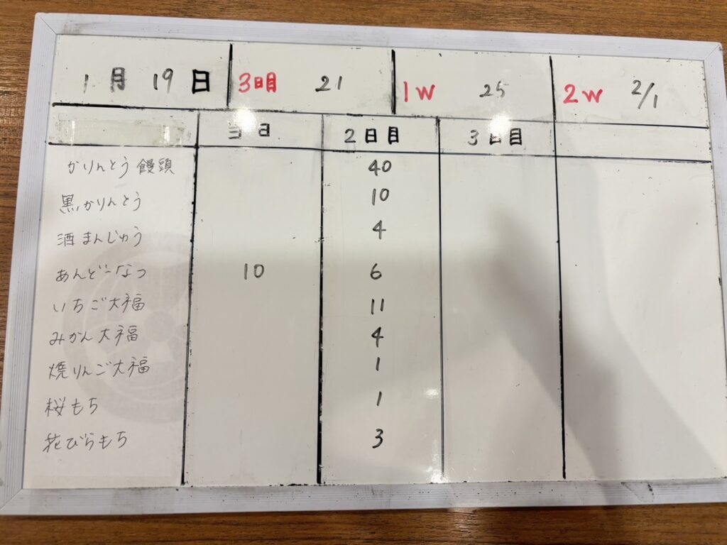 締め作業担当者はホワイトボードの翌日販売分①売りの数を、店舗レイアウト売上レシートのラインにあげる。